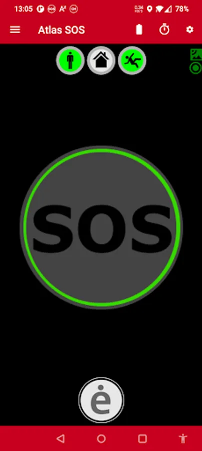 SOS via on-screen SOS button. Vibration feedback and positive action detection help prevent false activations