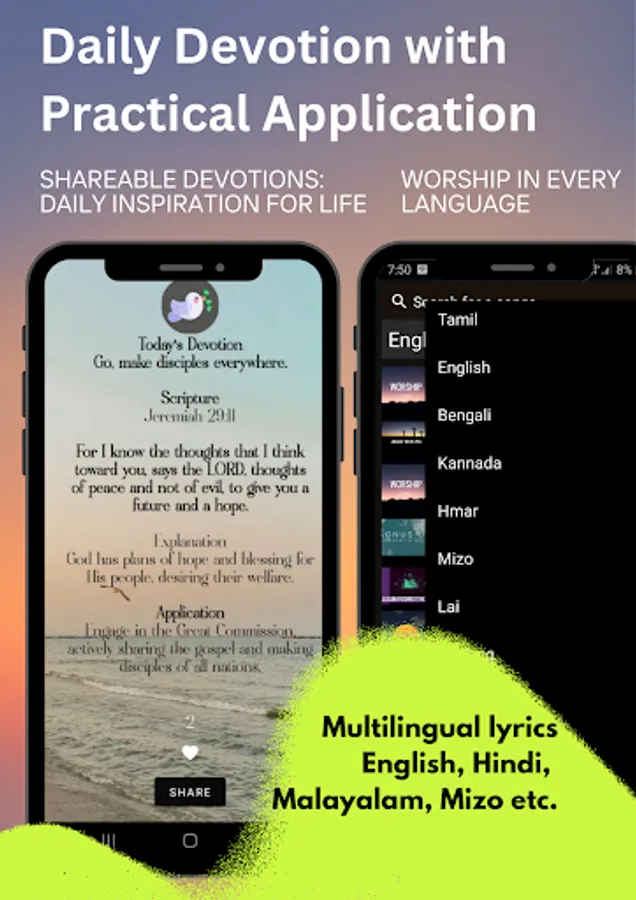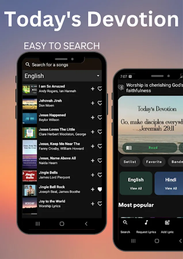 Multilingual Support: Worship lyrics available in multiple languages, with more being added in the future.