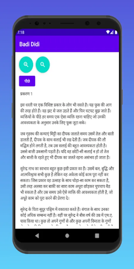 In this app I have divided the entire novel into 12 parts for easy navigation. A user friendly 'Zoom in' and 'Zoom out' feature is also provided for a convenient reading experience. This app also supports night mode if your device provides this feature.