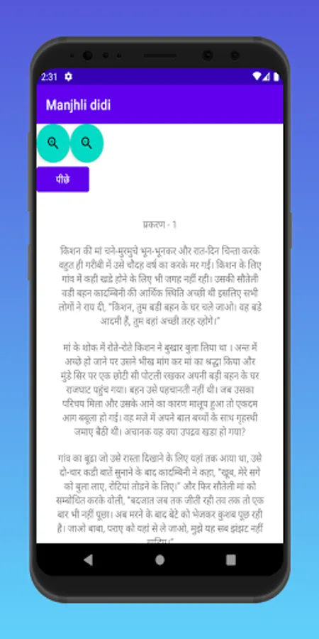 In this app I have divided the entire novel into 6 parts for easy navigation. A user friendly 'Zoom in' and 'Zoom out' feature is also provided for a convenient reading experience. This app also supports night mode if your device provides this feature.