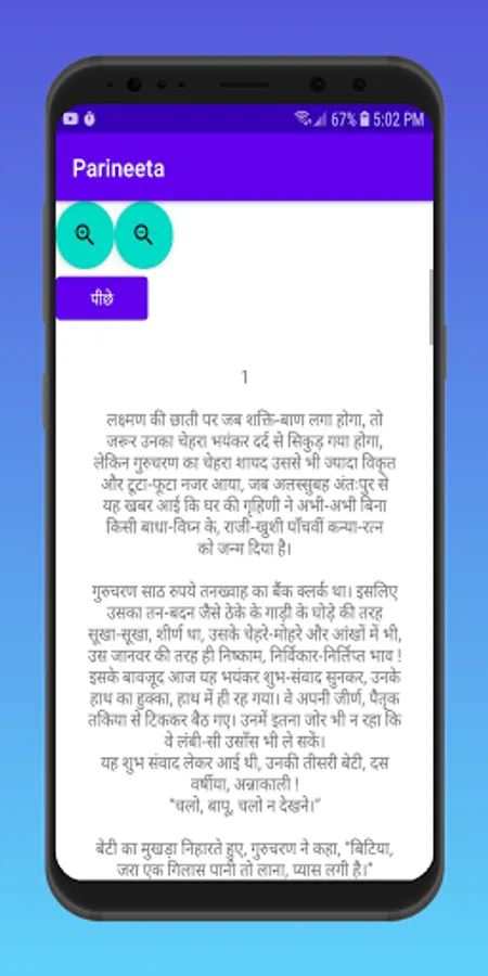 In this app I have divided the entire novel into 15 parts for easy navigation. A user friendly 'Zoom in' and 'Zoom out' feature is also provided for a convenient reading experience. This app also supports night mode if your device provides this feature.