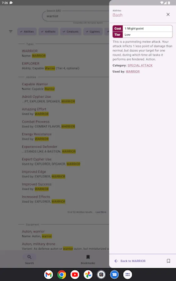 Cypher System SRD Lookup is your go-to companion app for the Cypher System, Monte Cook's popular TTRPG system! The SRD is compatible with all Cypher System settings including Numenera and The Strange.