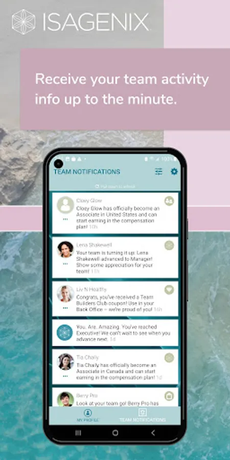 With the IsaPulse mobile app, you can receive real-time notifications about your Isagenix team’s progress. Instantly connect with, motivate, and congratulate team members directly or on Social Media. With a few taps on your mobile phone, you can call, text or email team members, or share your team’s success on Social Media.