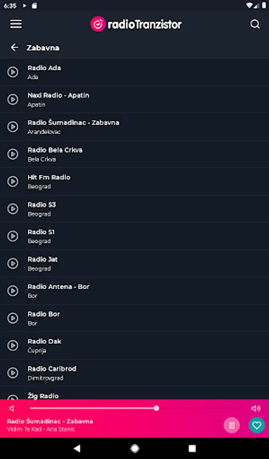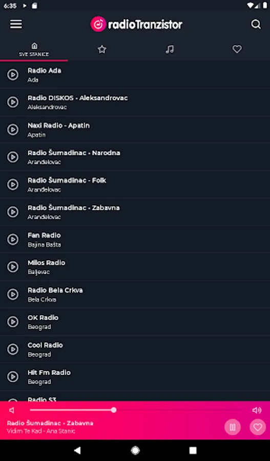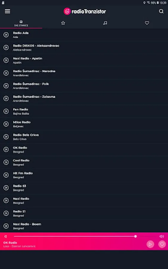 With the Radio Transistor Serbia - Radio Stations of Serbia app, you can listen to over 350 radio stations from Serbia, and the number of radio stations will increase over time. It is essential that you have a permanent internet connection, otherwise you will not be able to listen to radio stations that broadcast their program live.