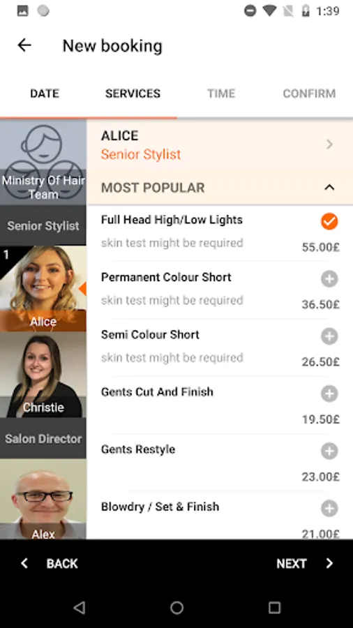 Ministry of Hair provides a modern environment, incorporating all the latest entertainment, furniture, fixtures, fittings and Salon equipment. There also is a full range of refreshments along with the latest magazines, visual entertainment and wifi connection, for all our guest to relax and enjoy their experience with us.