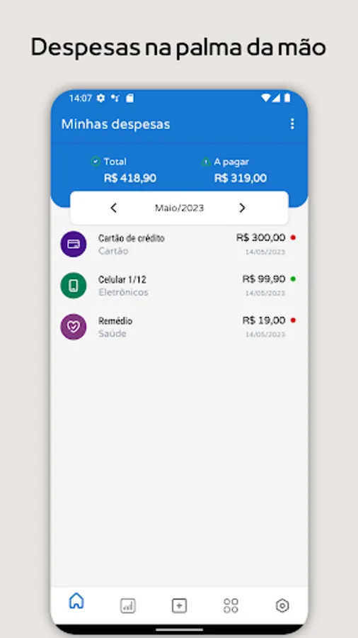 🎯 The Expenses app came to help people organize themselves financially by making them remember all possible expenses and see how much they actually spend monthly or annually. See some of the app's features: