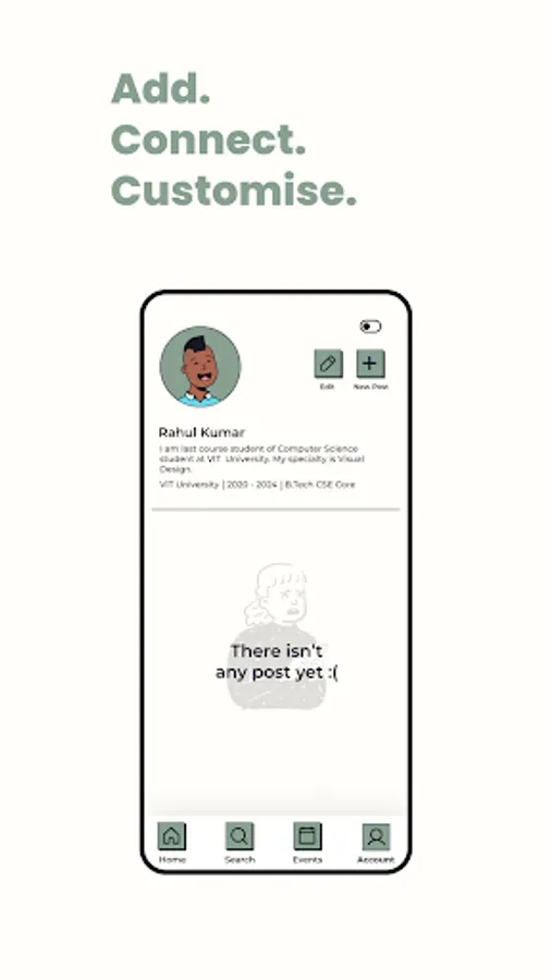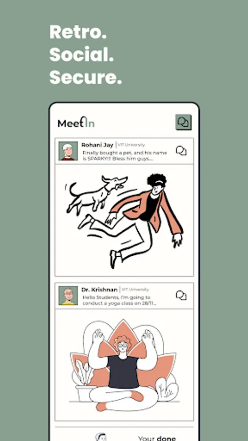 With Meetin, you can make and share your own pictures, stories, and videos with the people you care about. Connect with friends, tell them what you're doing, or see what's new around the university. Discover our enthusiastic community and feel free to express yourself, sharing everything from your daily experiences to the things happening around the campus. Learn more about the activities near you and experience university life through your camera lens!