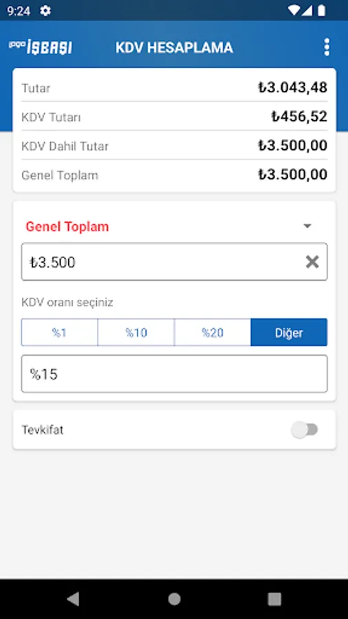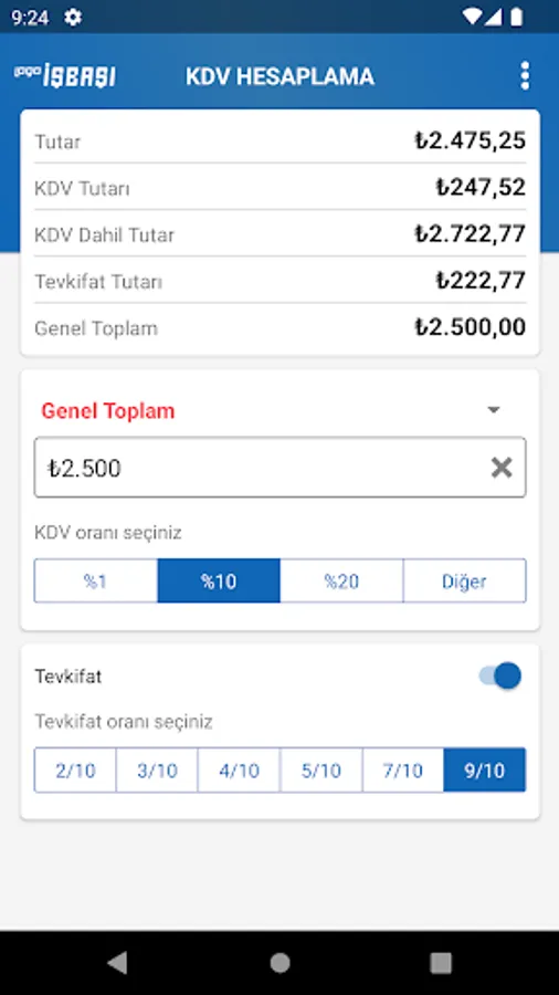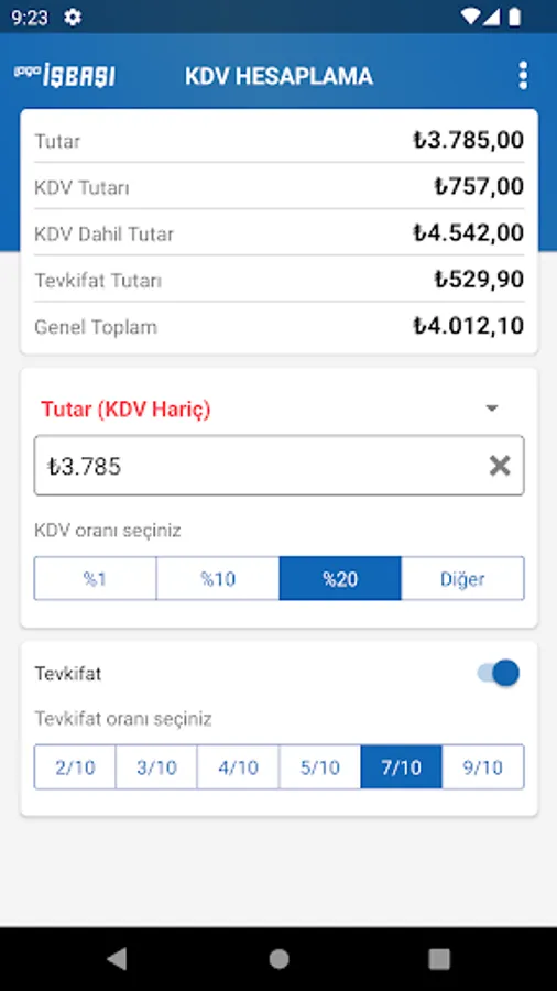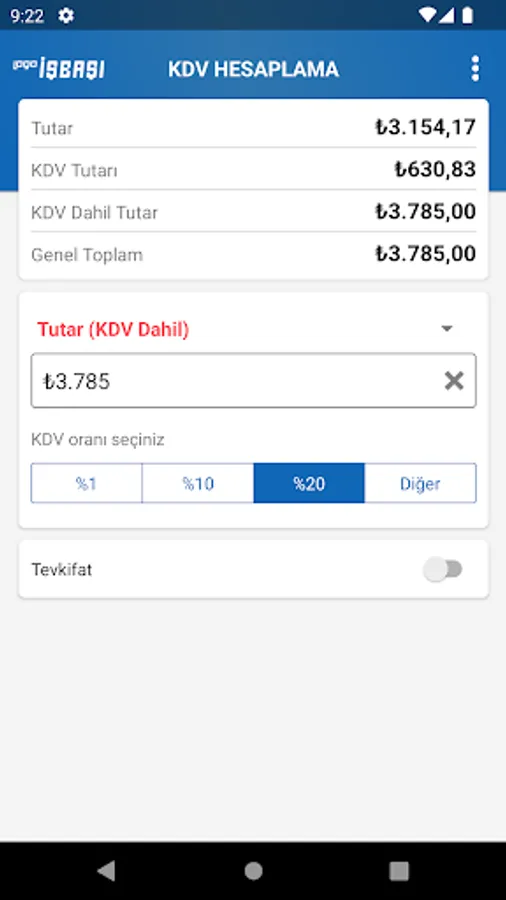 • Ability to instantly calculate Internal and External VAT without entering a new amount.