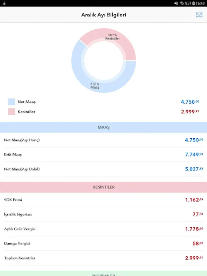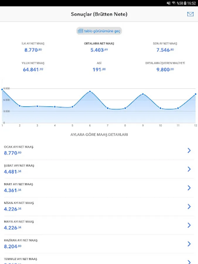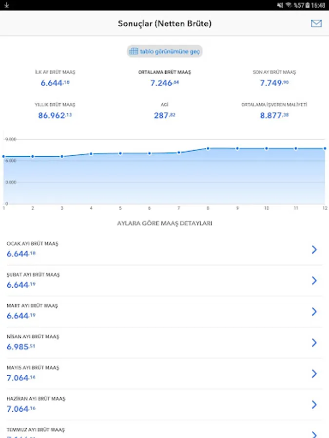 Since our application does not work with SGK (Social Security Institution), the data is not officially valid. Since each company may have special incentives and additional payments, it is possible that there are differences with your actual payroll data. If there are any differences, you can consult with the authorities in the Accounting or Human Resources Department of the company you are working to examine the details.