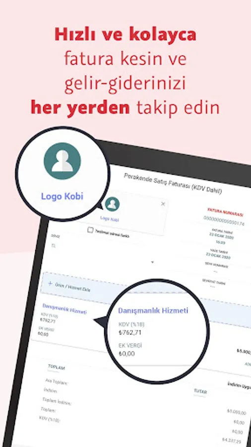 With Logo İşbaşı, which is the first and only pre-accounting application that issues invoices with a voice command, businesses; Invoice Tracking, Order Tracking, Income Tracking, Stock Tracking, Check Entry, Current Account Tracking, Cash-Bank Tracking, e-Invoice and e-Archive Billing solutions from anywhere with internet access - computer, tablet or smart mobile phone- they can use