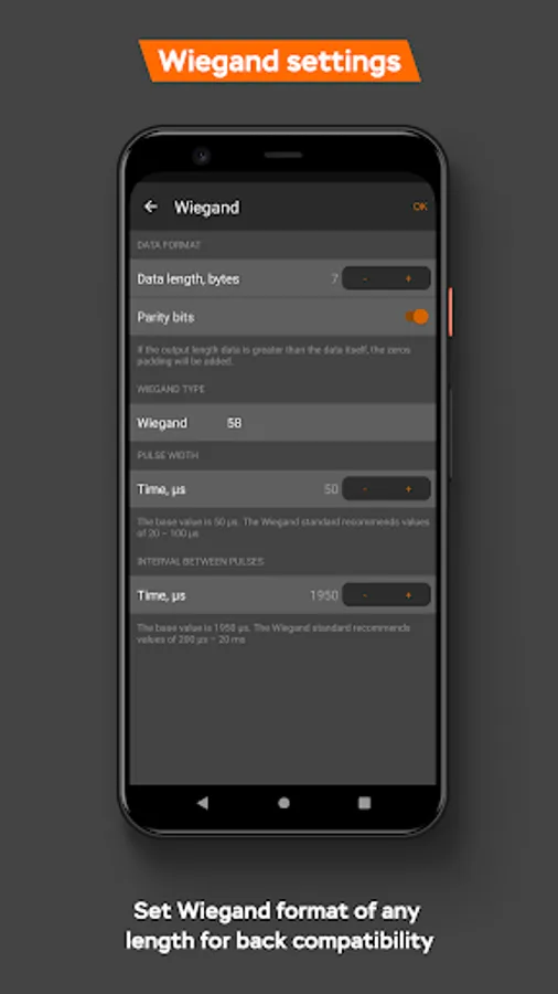 1) Create a configuration inside an application for your reader model or write an email to help@esmart.ru, in a free form describing the requirements for the settings that you want to change for the desired reader model.