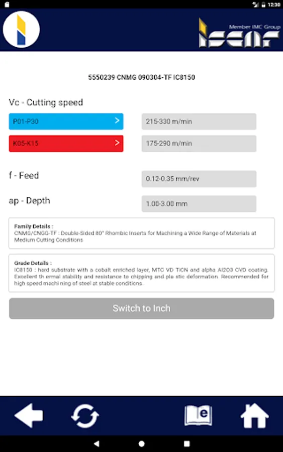 CUTTING INFO provides machining data for all of ISCAR's cutting tool geometries.