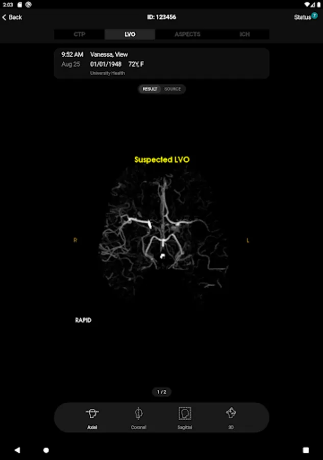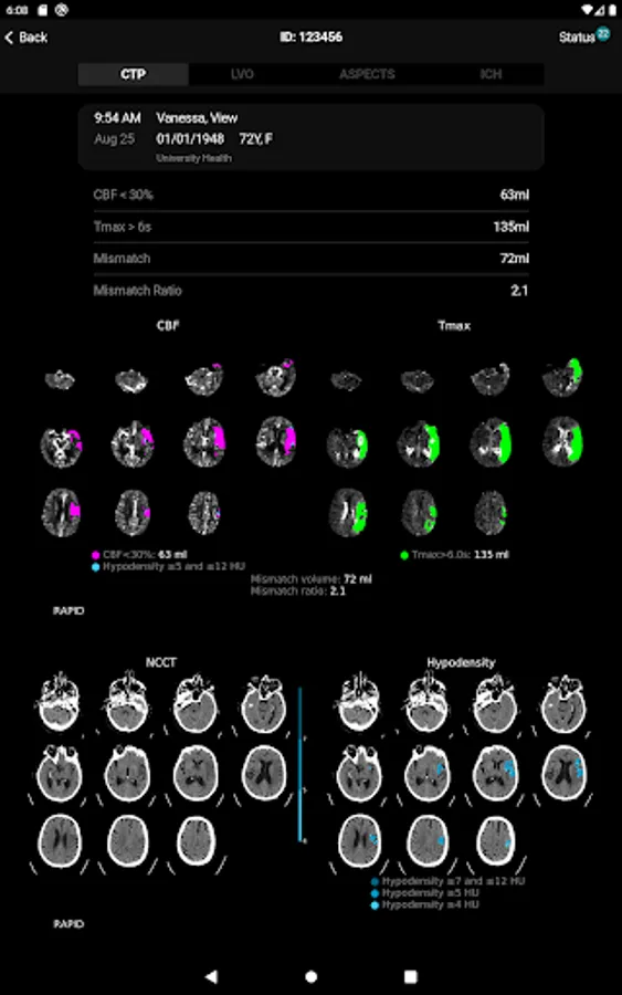 RapidAI is not for diagnostic decision making. Refer to the PACS or clinical system for case evaluation.