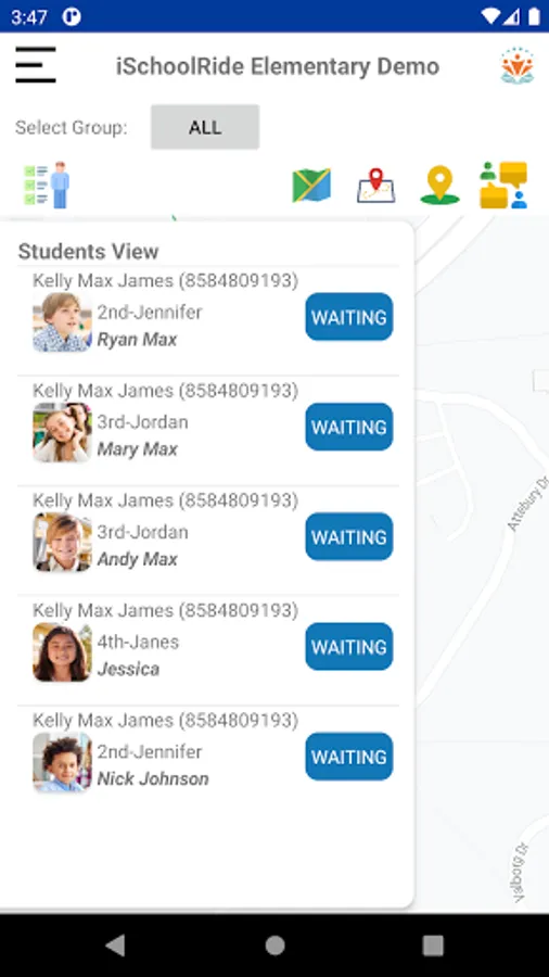 With the knowledge provided by iSchoolRide, school admins/teachers can plan to organize the pickupline differently. No longer need to run around asking parents which students they are picking up and looking for the students.