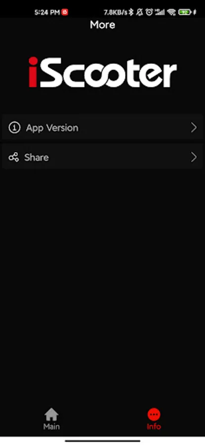 On the "Info" page,you can check the version of the vehicle and share APP.