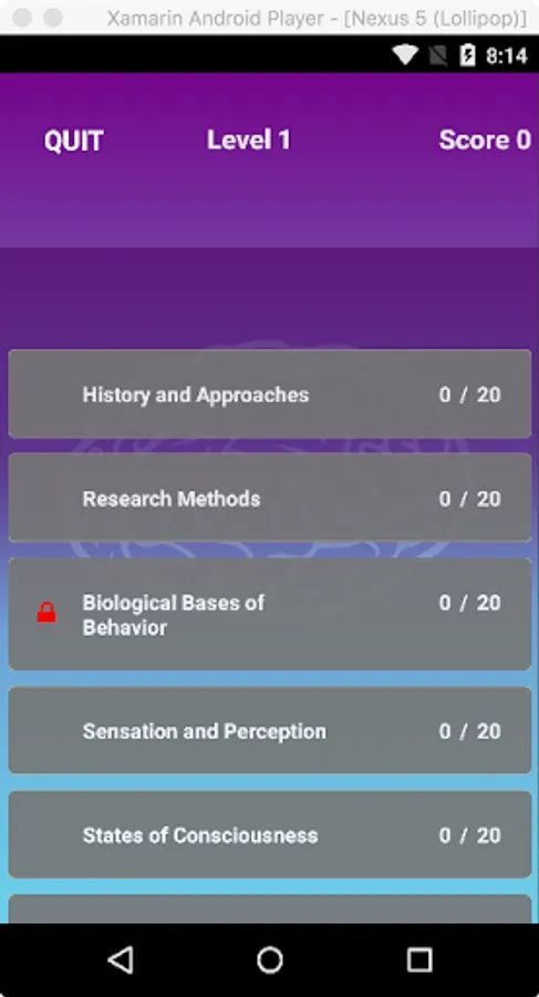 Our second component is where the FUN begins. 5 levels of multiple-choice questions that you must unlock as you score points. These questions come from each AP Psychology chapter. Level 1 has easier questions and level 5 contains the most challenging. As you move through the levels, your learning improves.