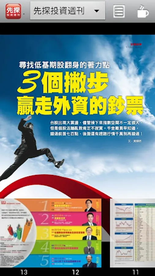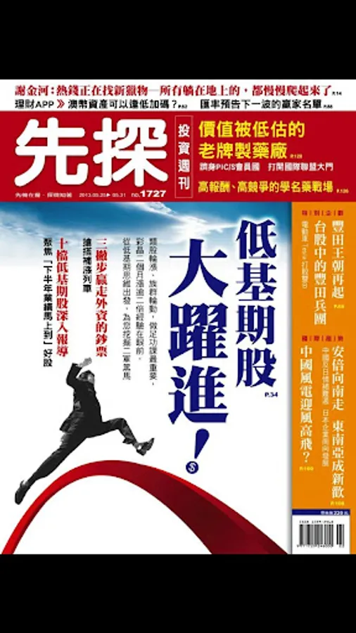 每周四出刊,不但完整提供一周投資訊息,同時準確預測未來的動態趨勢。秉持「看先探讓您在投資市場搶先賺」精神,成立逾三十年來,我們一直領先其它理財雜誌,透過最前瞻、最深度、最精準的財經趨勢分析,協助讀者掌握台股及各類投資工具的致富契機。不論市場起伏漲跌,週週都讓讀者「先看先賺」。