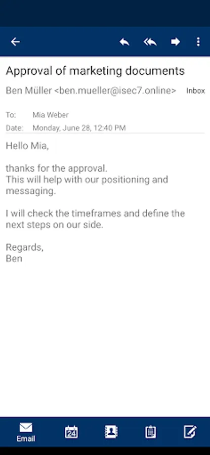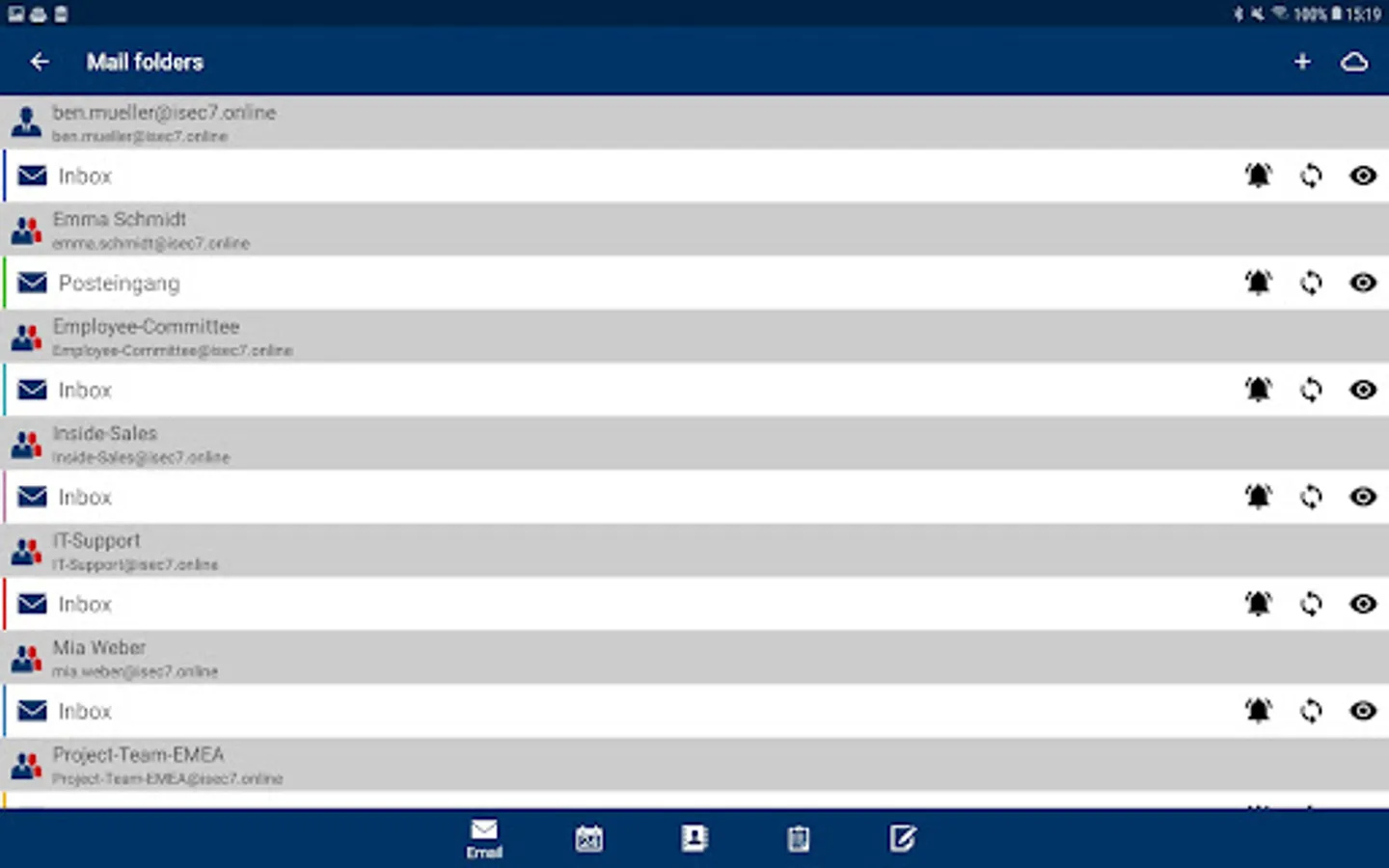 Authorised representatives have read and write access, similar to their permissions set in Microsoft Outlook. ISEC7 Mobile Exchange Delegate connects directly to the Exchange Server and operates independently from any middleware or 3rd party application for administration and configuration.