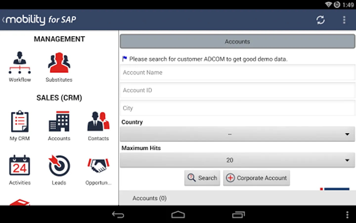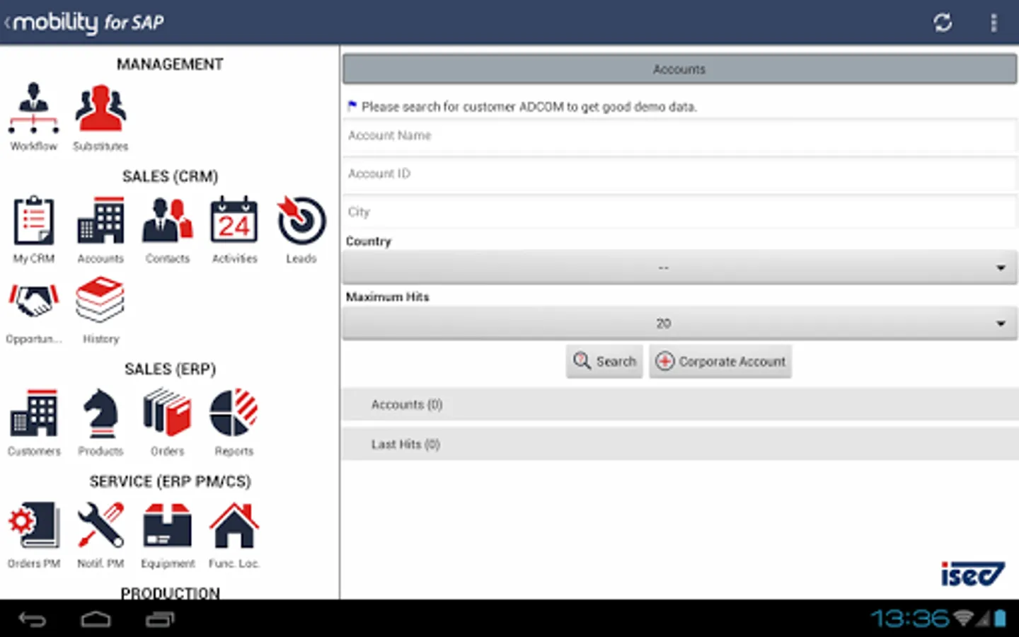 This application connects to SAP demo systems of ISEC7. To connect to your own backend systems please contact ISEC7.