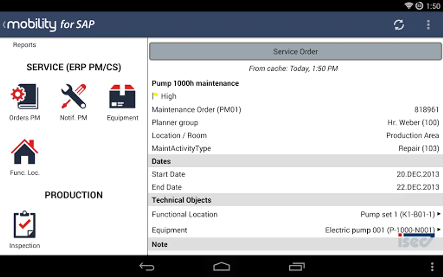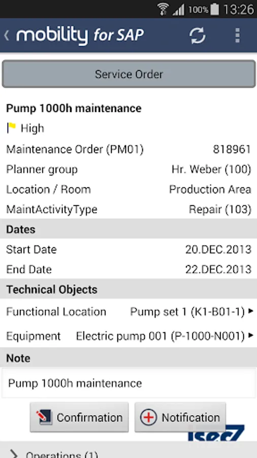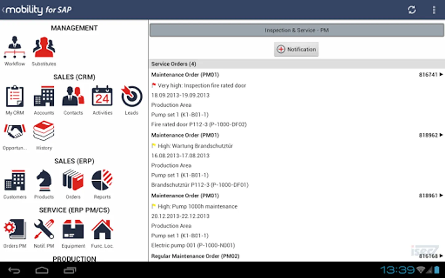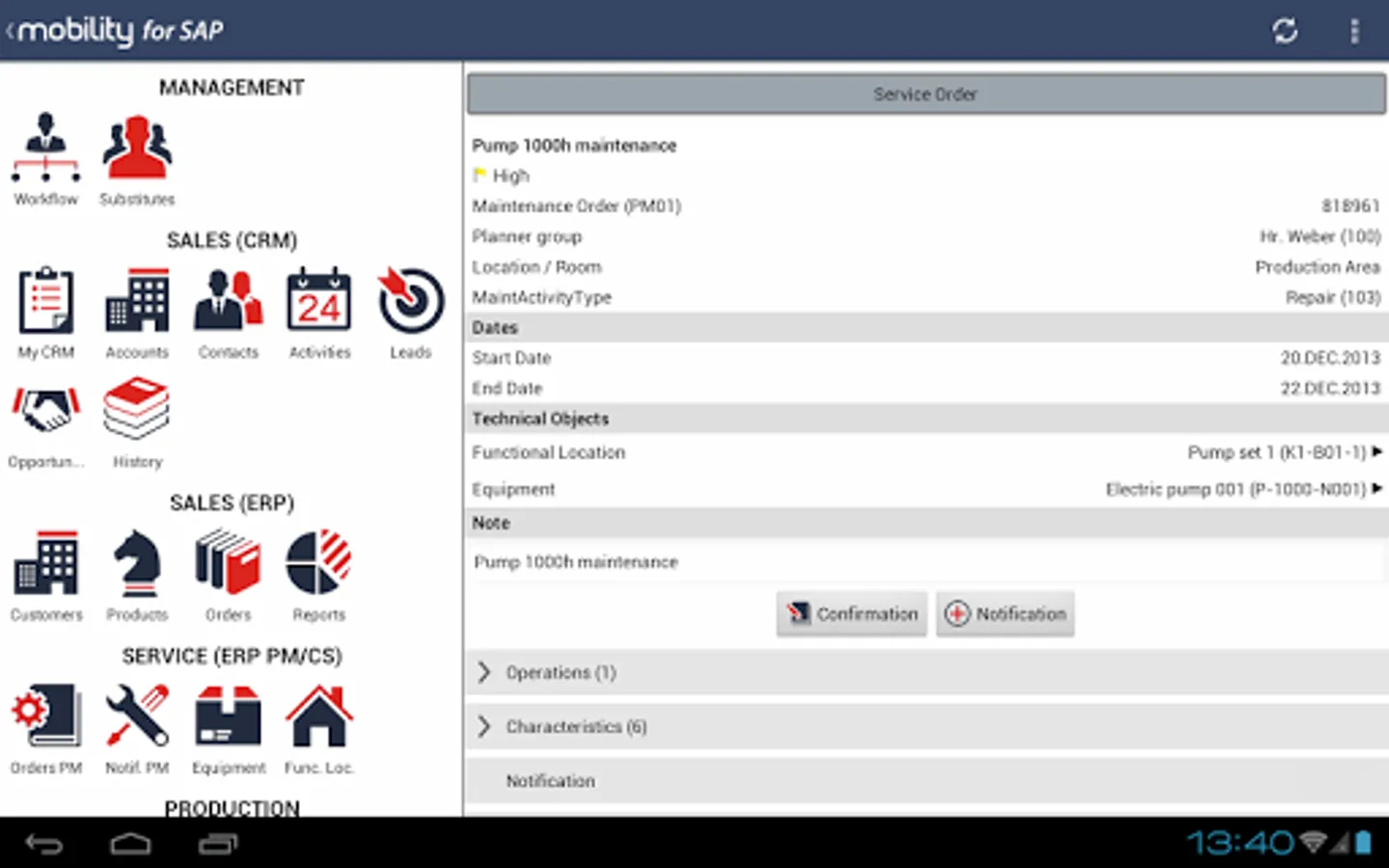 • Plant maintenance and customer service (such as confirmations of service orders)