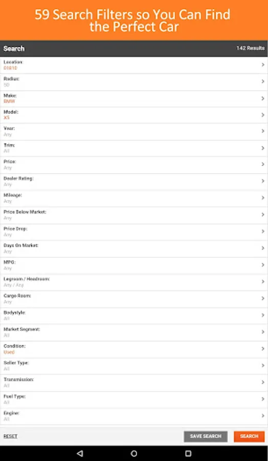 * FIND YOUR PERFECT USED CAR OR TRUCK USING 59 SEARCH FILTERS
