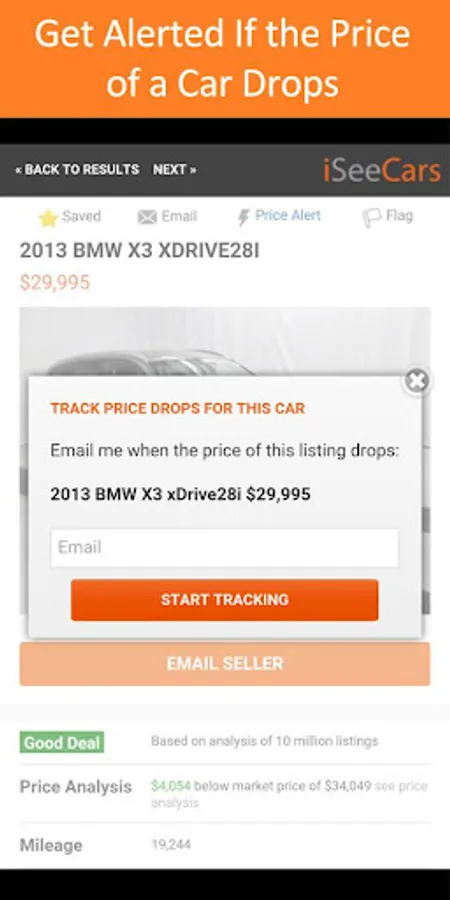 If you find a car that you’re interested in but want to wait for price to go down then you can easily set up a Price Alert so that you’d get an email whenever the seller drops the price.