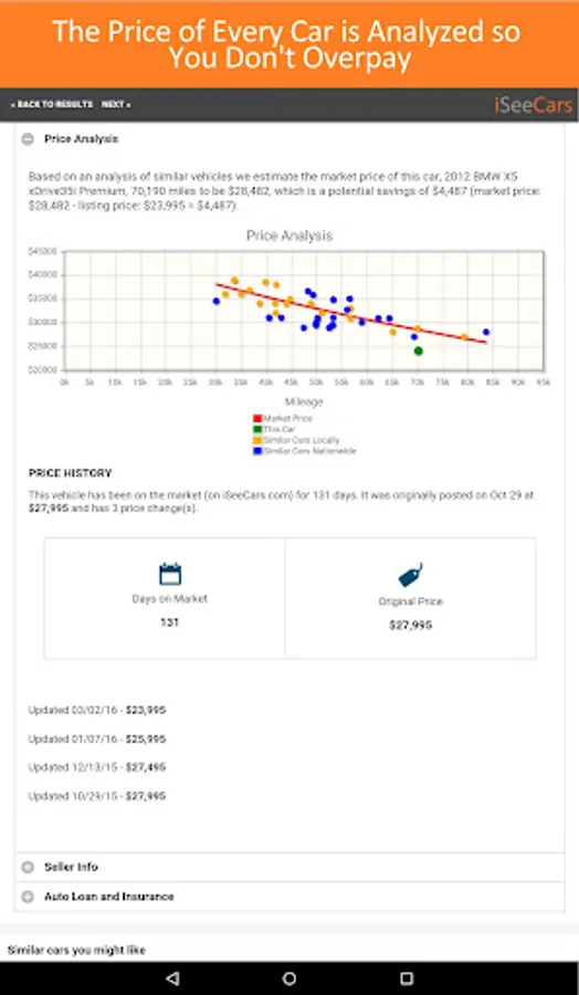 Biggest used car search engine - Search 4 million cars for sale all in one easy-to-use app. Users have saved over $150 million to date. iSeeCars, awarded the “Best Consumer Tech that Makes Life Easier” by MITX, has been featured on Consumer Reports, Forbes, Fortune, CNBC, CBS, NBC, USA Today and many others.