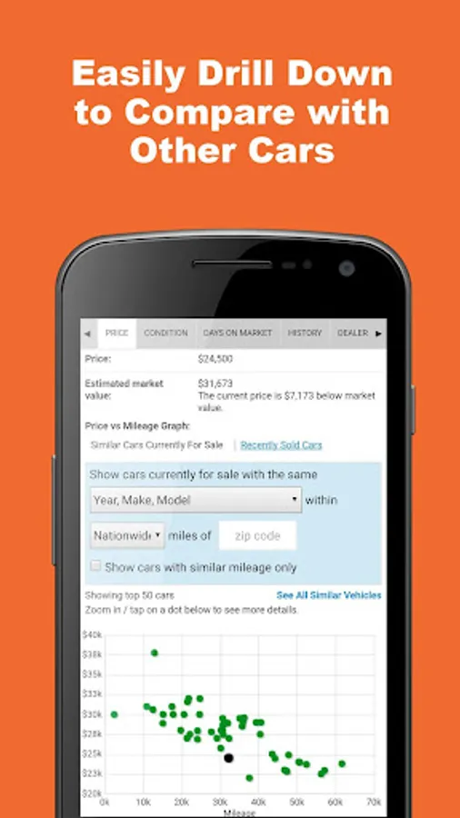 Get an estimate of the used car’s market value compared to other cars that have been sold in the same local area.