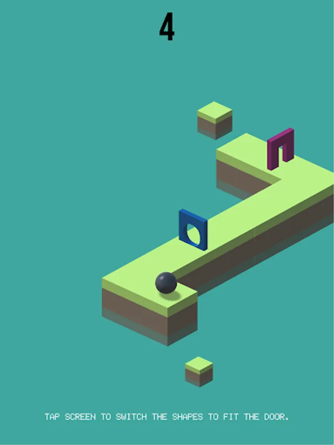:::You have 3 kinds of shapes: Sphere, Triangle and Rectangle. And there are 3 kinds of doors on the road. Tap screen to switch the shapes to match the doors.