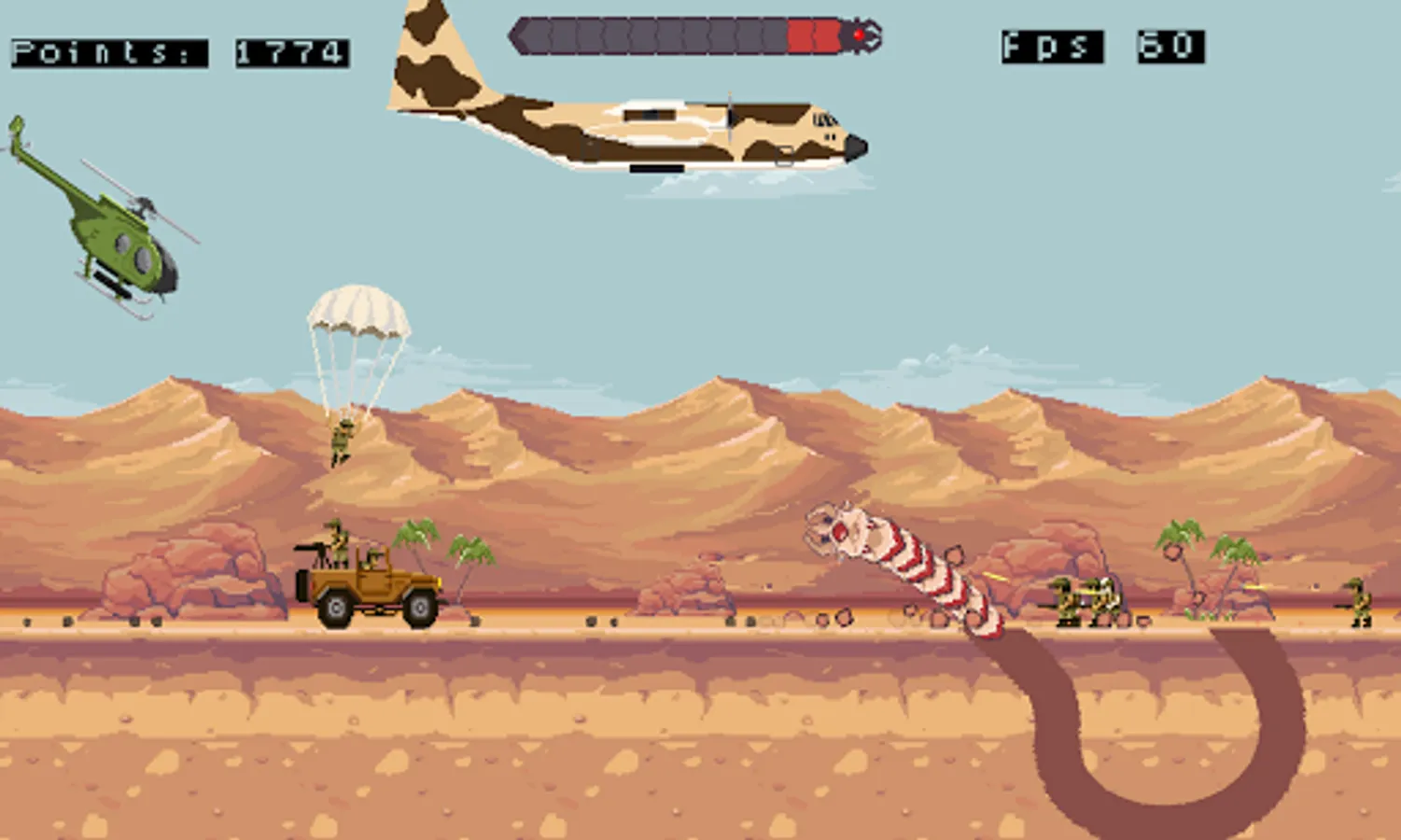 This army just made their last mistake, you must prevent them from occupying the desert where you live but it will not be easy. Helicopters, grenade launchers, parachutists, airplanes and a whole armed force will fight against you.
