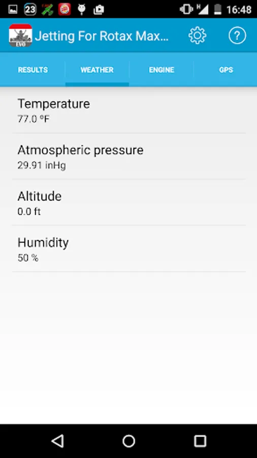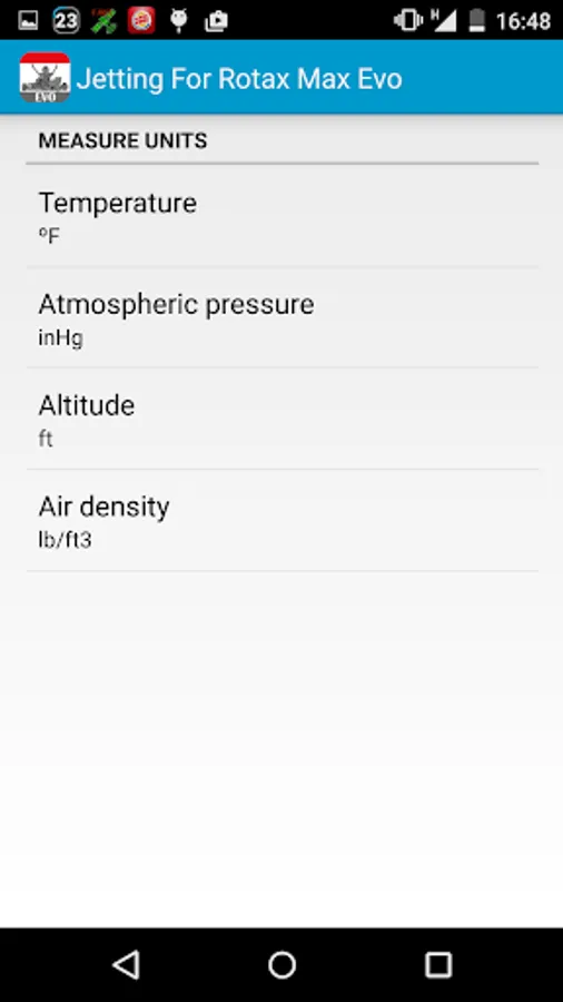 - Air Density Meter: if you don't find a specific jotting app for your engine, you can use this app to create jeting charts.