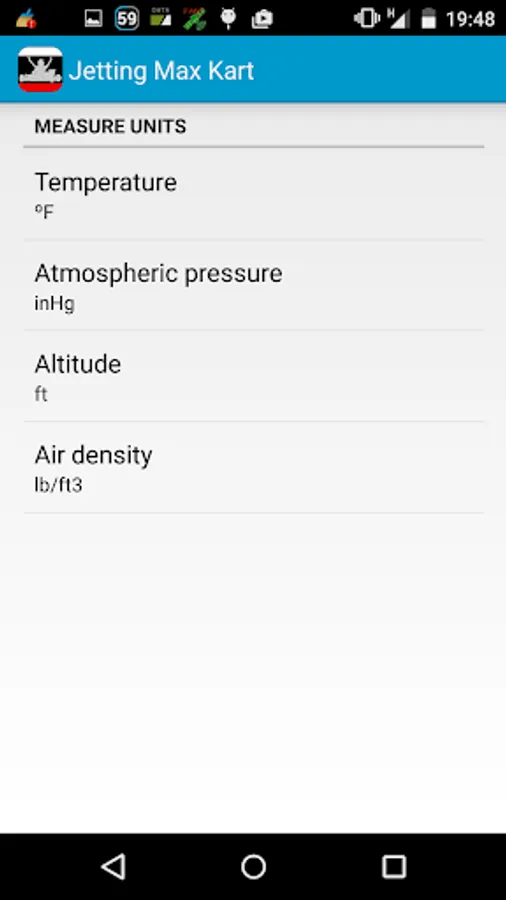 - Air Density Meter: if you don't find a specific jotting app for your engine, you can use this app to create jeting charts.
