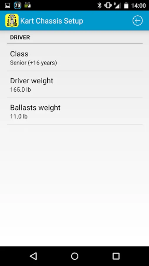 The application is valid for sprint (road) karts and for all classes (adult or senior, cadet, junior). It's usefull for both experienced or novice drivers. For the former, it'll be a second opinion about what's wrong with the chassis setup, and for novices it will teach them the secrets of the chassis adjustments and chassis setup.