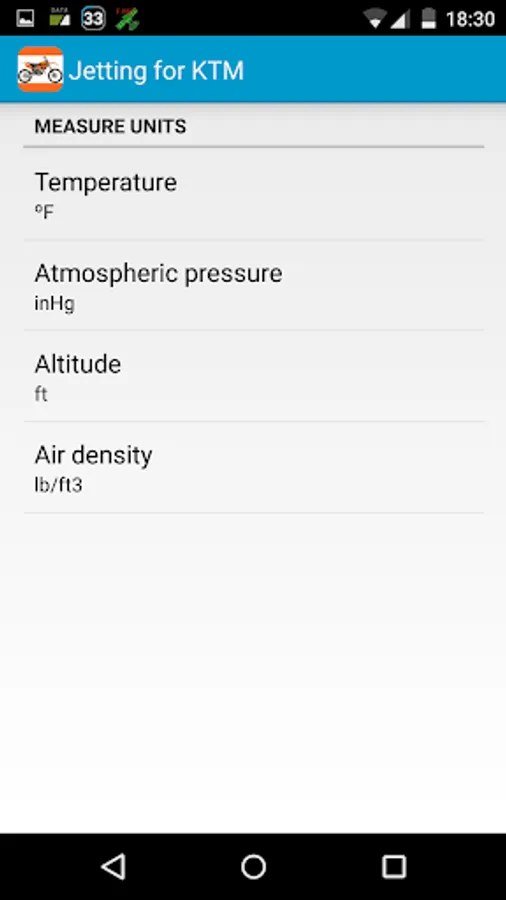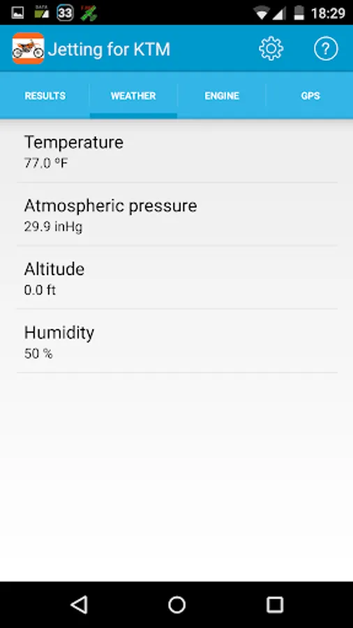 This app will help you configure the carb of your 2 strokes KTM dirt bike (SX, MX, XC, EXC, MXC, SXS) to improve its performance with no need of repair manual or owner's manual. Using weather conditions and your engine / carburator configuration, the app will show you a recommendation about jetting to your specific bike, so it can be useful to get a spot-on jetting configuration and adapt it to weather changes.