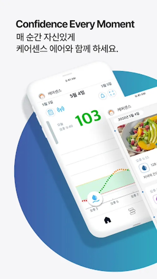 The CareSense Air System is an auxiliary device that supplements the blood sugar information obtained from a standard blood glucose meter and does not replace it. This product requires blood glucose calibration once immediately after sensor stabilization, twice every 12 hours thereafter, and then every 24 hours thereafter. When physical symptoms or expectations do not match the measured values, blood sugar measurement through fingertip blood sampling is required.