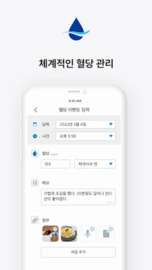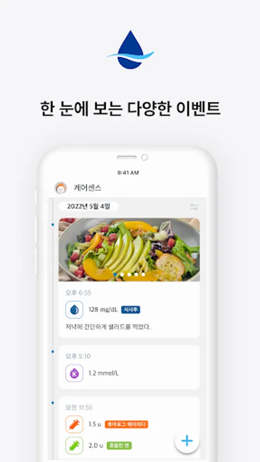 - Event notes such as blood sugar level, ketone level, insulin, oral medication, meal, exercise, etc.