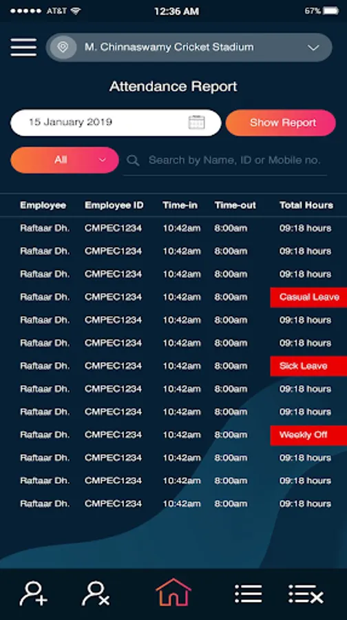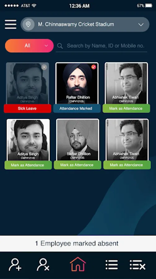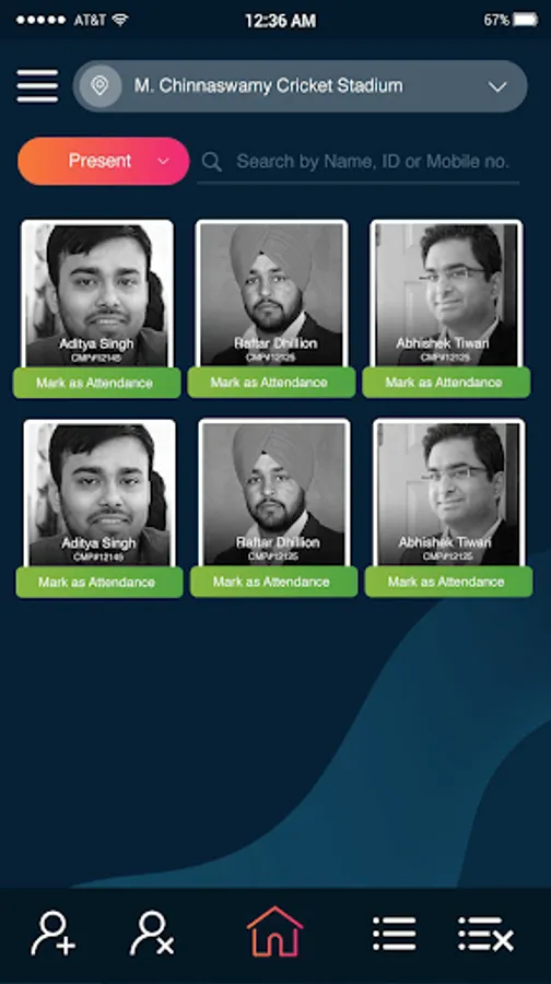 The mobile application provides a simple photograph based attendance workflow. The application only works within the defined geofence.