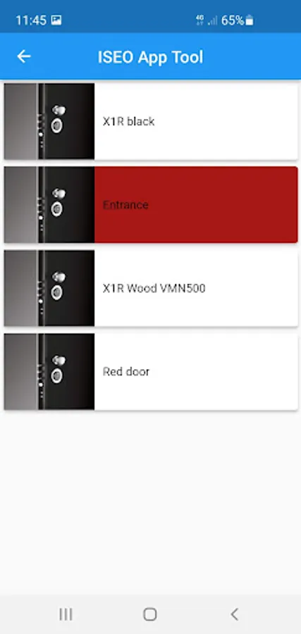 ISEO app for installers that allows various technical functions for downloading particular firmware.