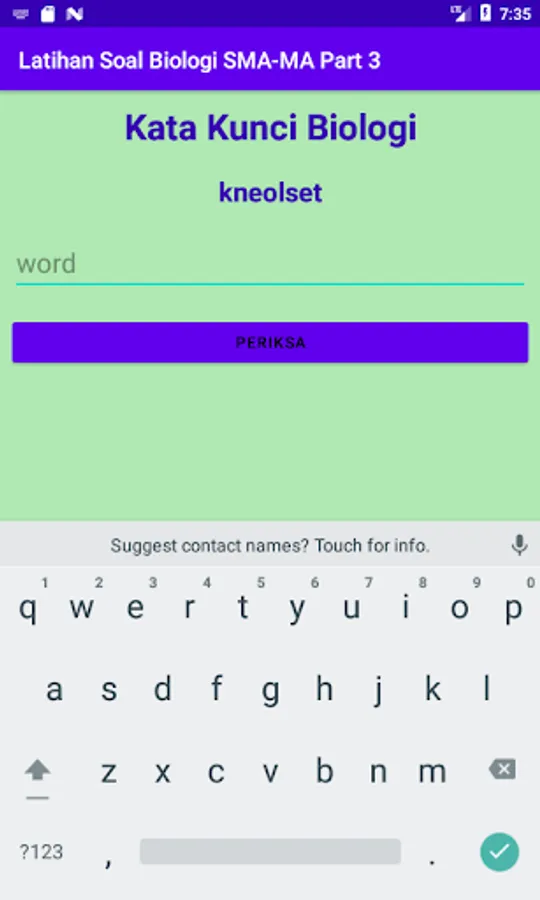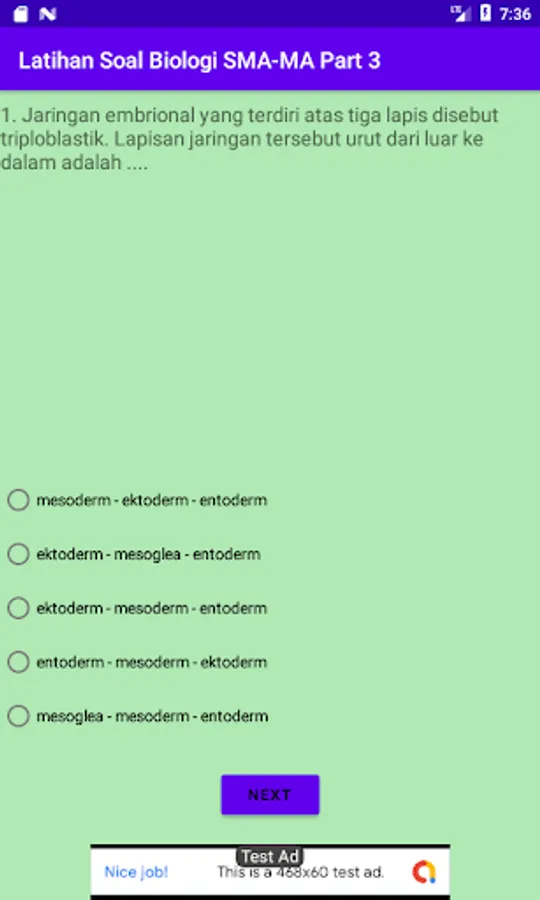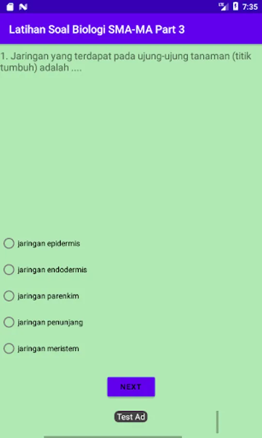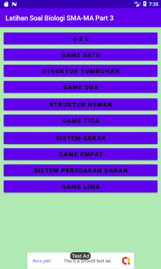 Applications to practice SMA-MA Part 3 biology questions about cells and their organelles, plant structures, animal structures, locomotor systems and circulatory systems, including their scoring. In addition, this application is also equipped with educational games to train focus, concentration and biology key words.