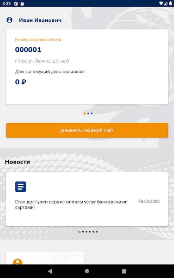 The "BashRTS" application was created for simple management of a personal account and control over the timely payment of consumed services. The latest cloud technologies provide quick access to the latest news and company promotions, to the "Virtual Reception" service and all operations related to the formation of receipts. The application will remember all your data and allow you to connect without passwords and logins from anywhere in the world. For users of the application, an online service is also available for transmitting readings of individual metering devices for hot water supply and heat energy.