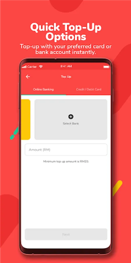 Top-up your e-wallet instantly by card or your preferred bank account and request or transfer funds in just a few simple taps.