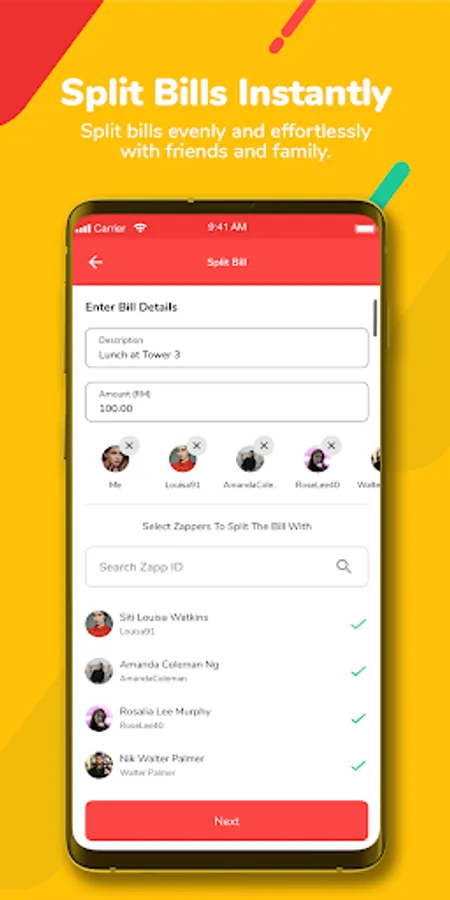 Split the bill instantly with Zapp by doing it the cashless way. Enter the amount, add your friends or family and we’ll do the rest evenly and instantly for you.