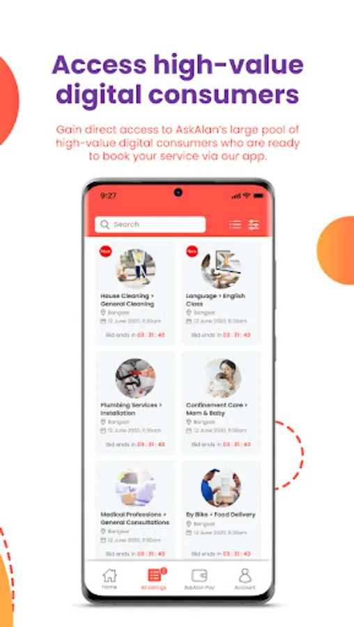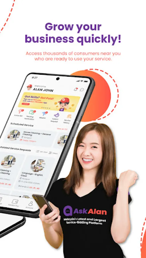 AskAlan, Malaysia’s #1 Delivery and Personal shopper Services App. Other popular service categories include Pet grooming, Personal Chefs, Facial, Confinement Care, Massage, Photographer, Video Services, Handyman, tuition teachers, housekeeping, and hundreds of other professional services. We bring to you the latest and most efficient way for you to connect and network with thousands of new customers and expand your business.