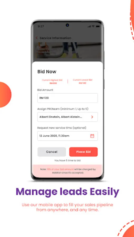 Answer a set of questions about their job request, including the location, timing, and specific details. You can look at requests in your area (for free), decide which ones are relevant to you, and provide an initial quote for your service. It's important that the customers have faith in you hence they would probably look at your business profile and your past reviews before determining whether to accept your service. Finally, you can then use in-app chat (or call/SMS) to finalize the details of the sale!