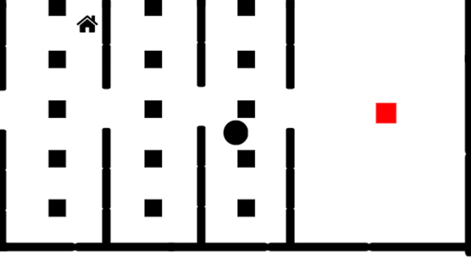 Objectives of the game screen without hitting the ball over him is to control the black walls can be sentenced to a red square.