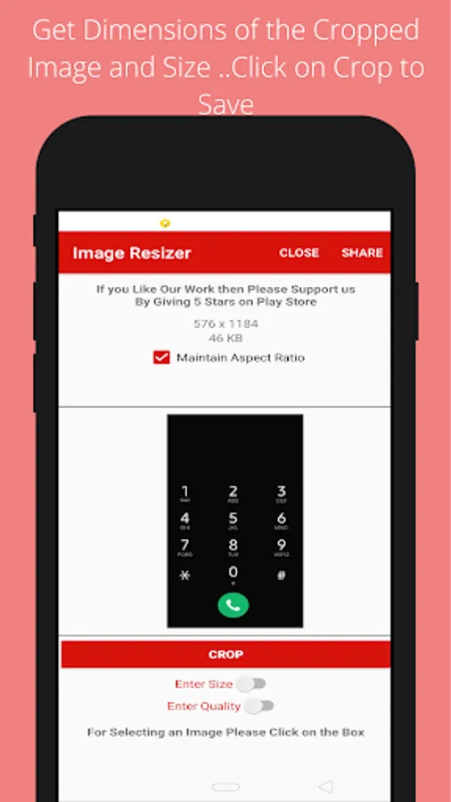 * Get Instant View of KBs and Dimensions of the Cropped or Compressed Image