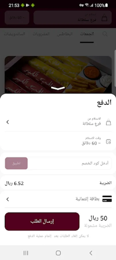 - Request for delivery without going to the restaurant
