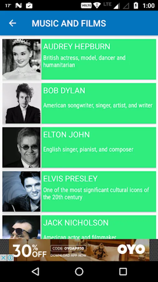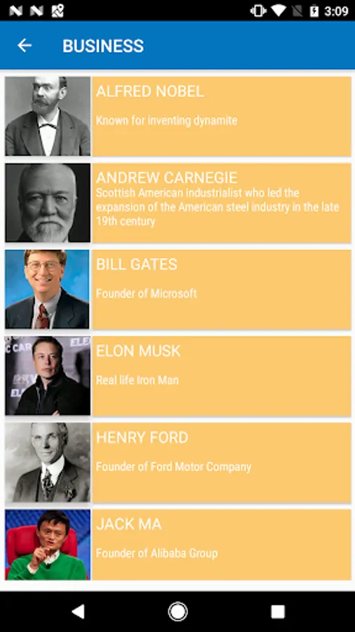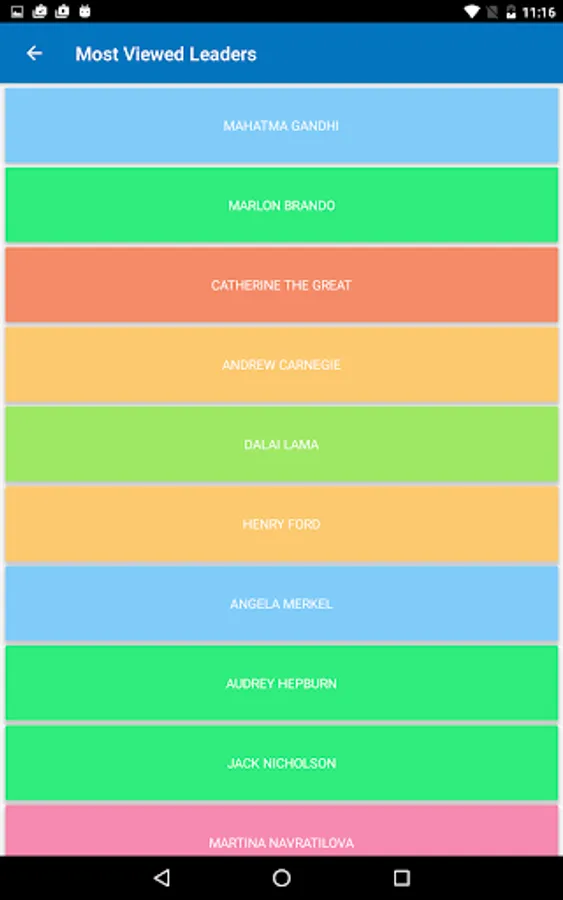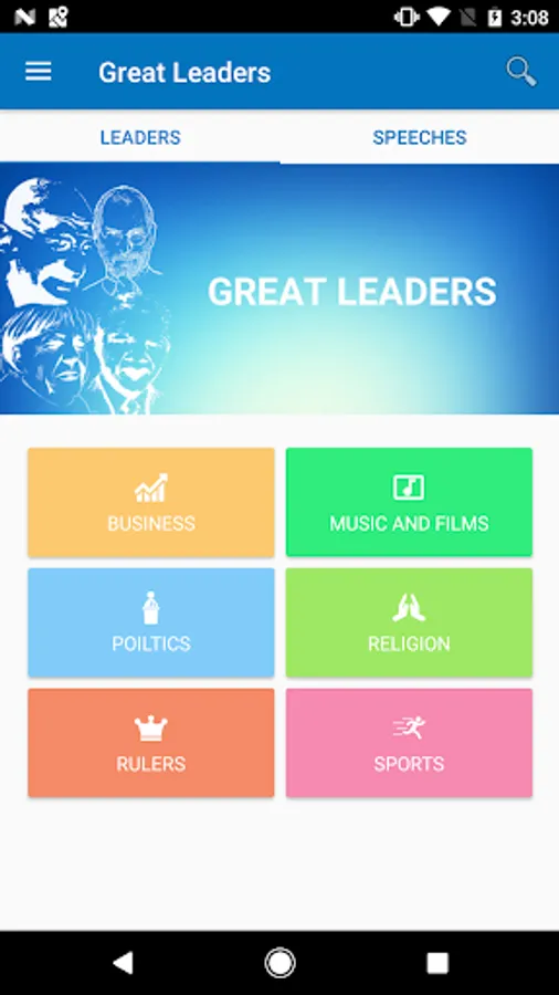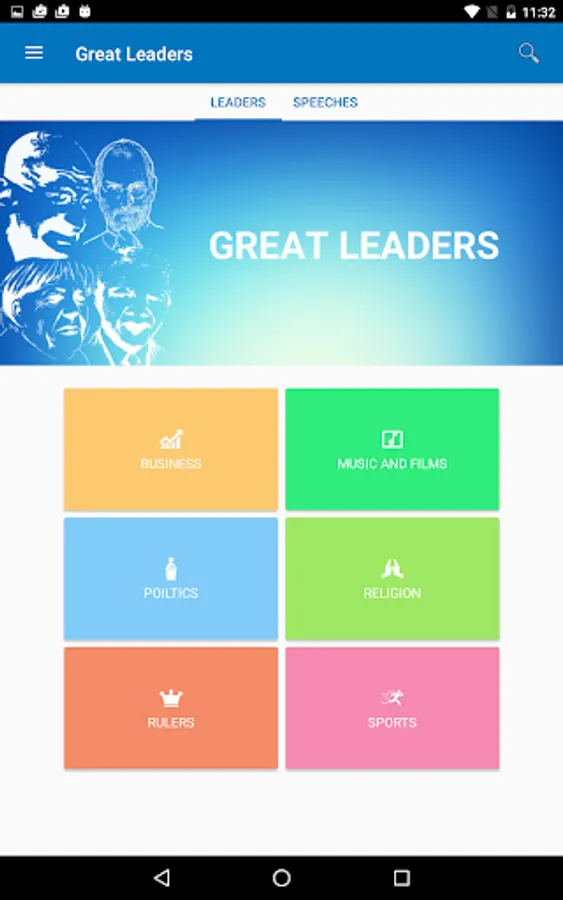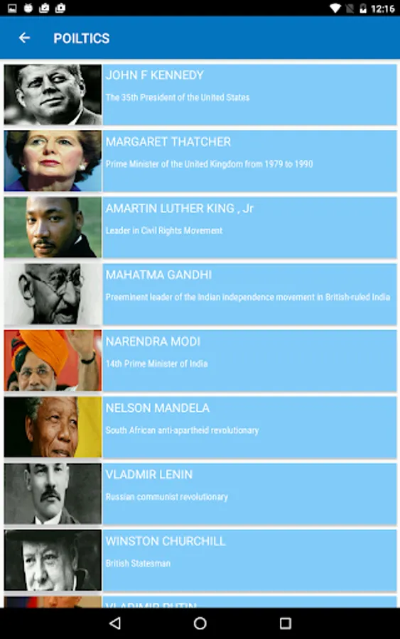This app gives a description of most prominent leaders in each of the these six major categories:-