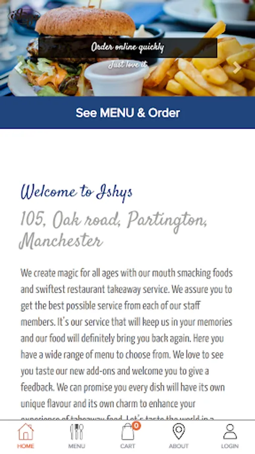 Ishys Takeaway based in 105 Oak road, Partington, Manchester, Greater Manchester, M314LD. We aim to bring all of our customers the best value for money, services and food around, plus we are constantly aiming to improve our service to you.