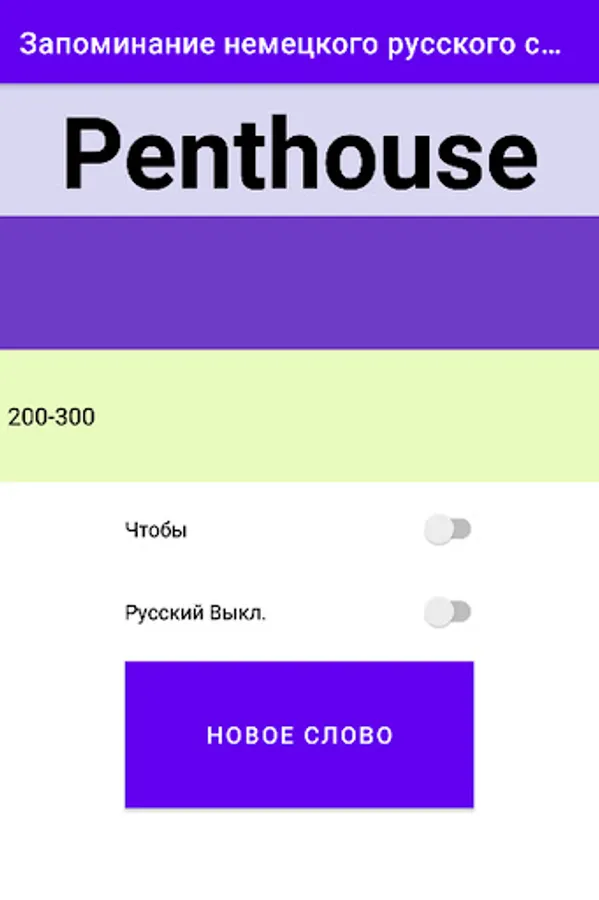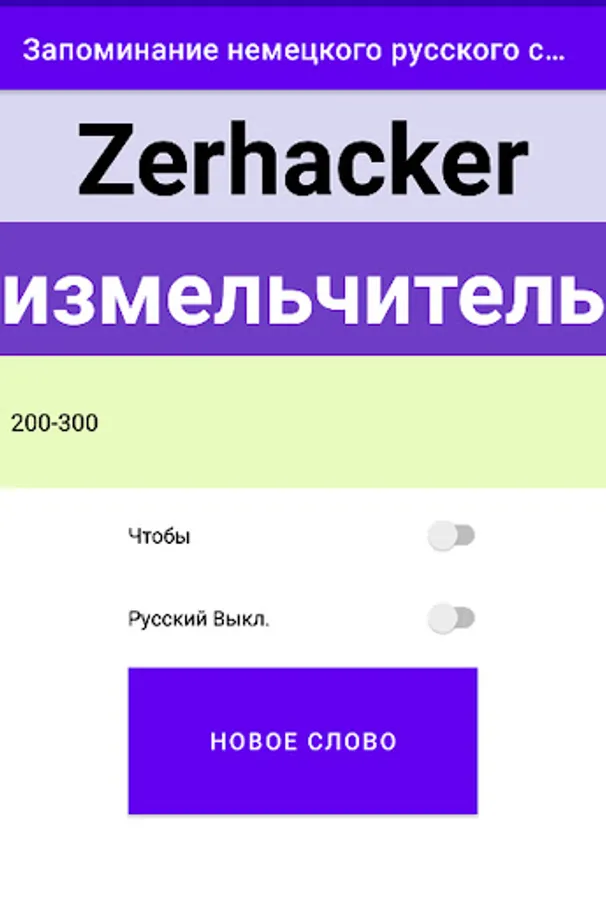 Memorization of German words with 4000 German-Russian words and 40 word sets